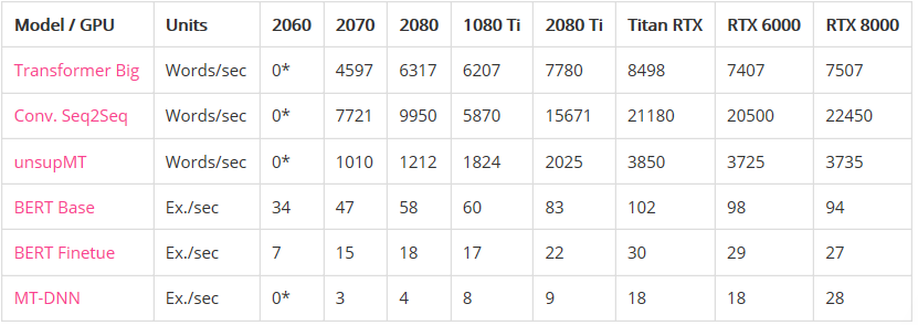 - RTX 2080 Ti(11 GB):你在認(rèn)真研究深度學(xué)習(xí)并且您的GPU預(yù)算約為1,200美元。RTX 2080 Ti比RTX 2080快大約40%。