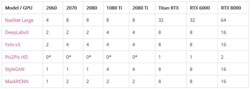 - Titan RTX和Quadro RTX 6000(24 GB):你正在廣泛使用現(xiàn)代模型,但卻沒(méi)有足夠買下RTX 8000的預(yù)算。
